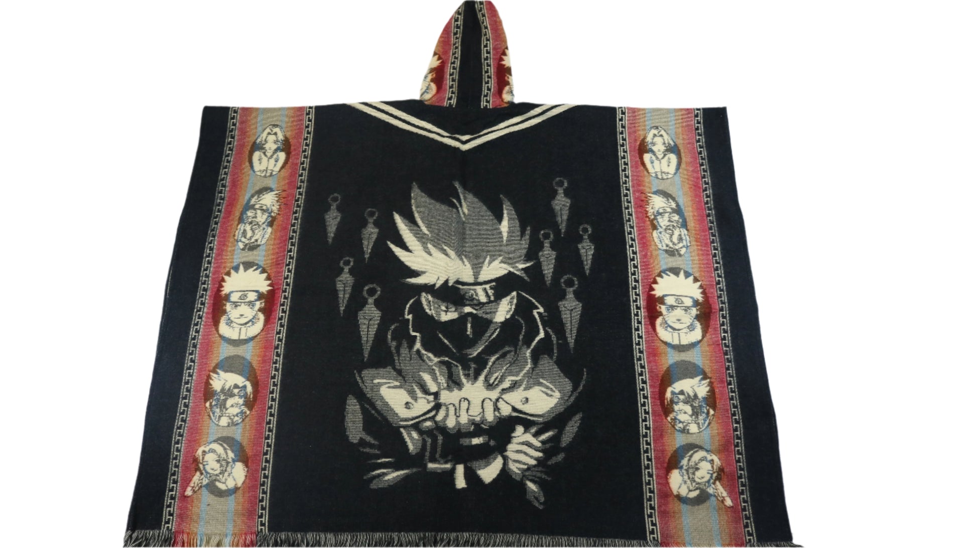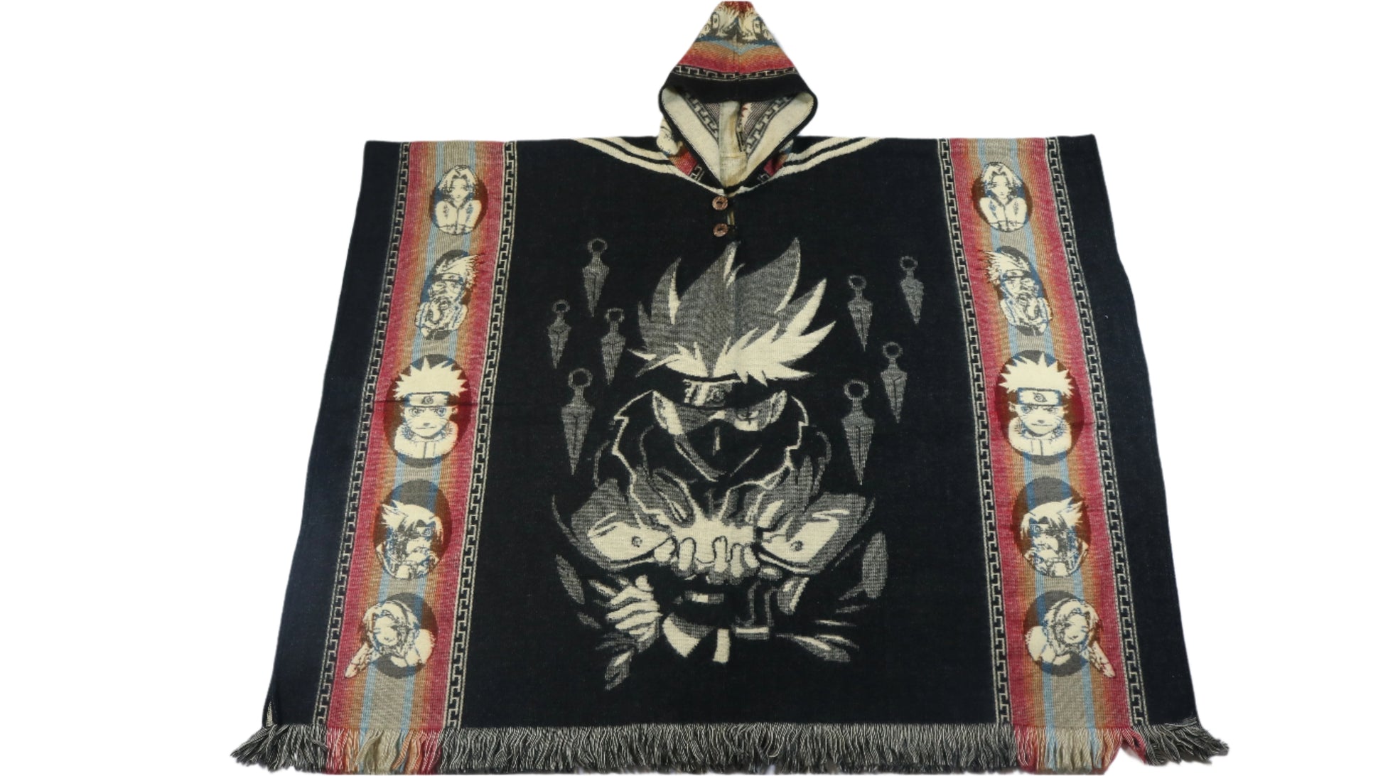 Stay cozy with the Team 7 Fusion Poncho. Made with soft and comfy material, this oversized poncho features the iconic Naruto Team 7 design. Perfect for any anime fan, this poncho is a must-have for those looking for a comfortable way to show off their love for the series.